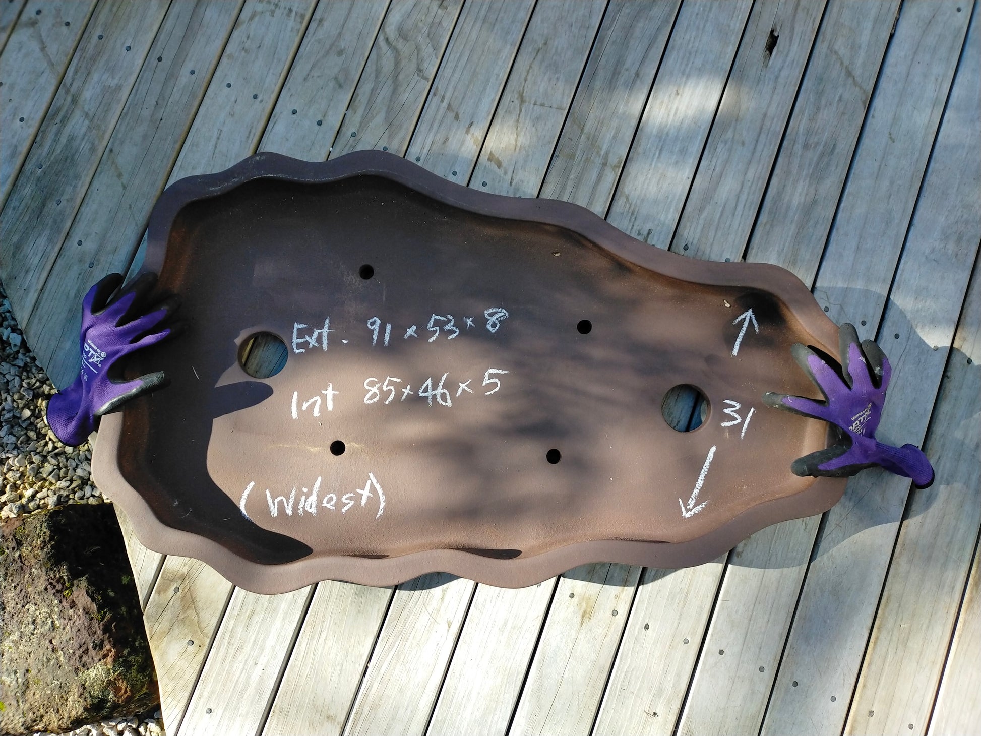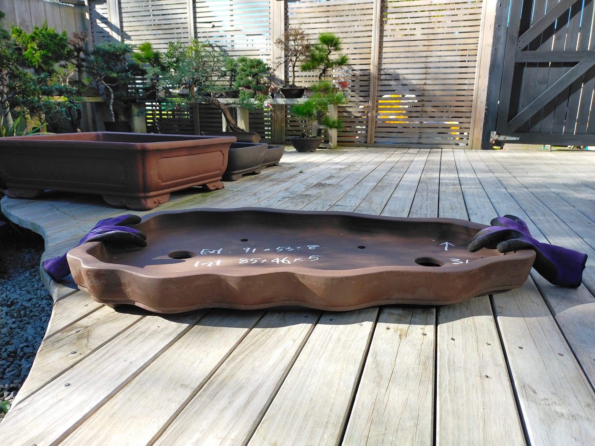 This beautiful bonsai pot is made of purple sand clay or zi-sha, made in the famous Yixing city (Pottery City) of China.