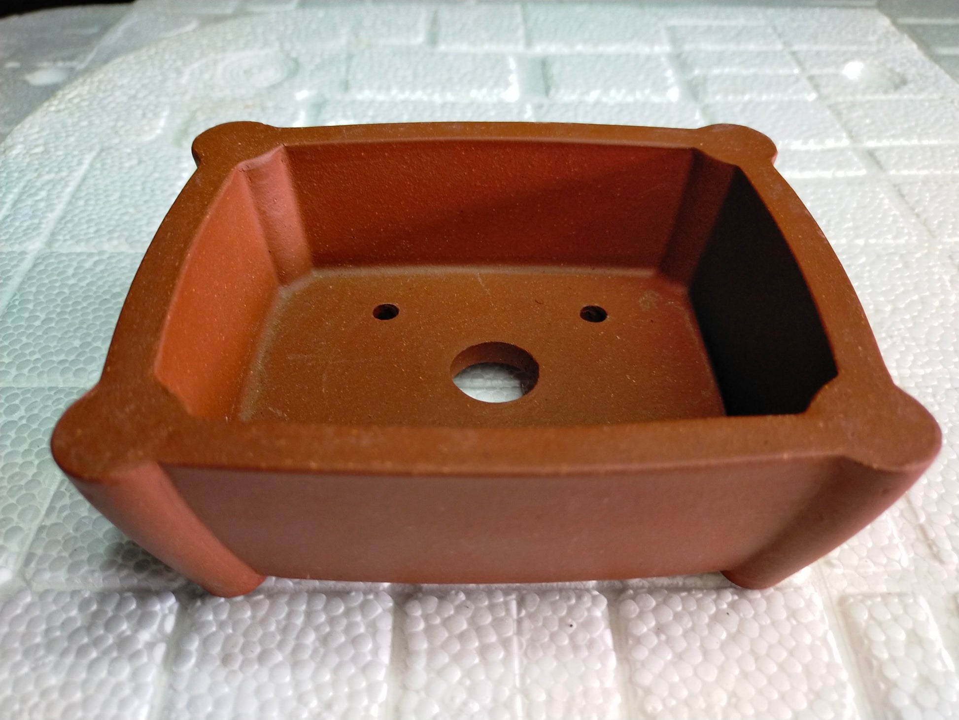 This beautiful bonsai pot is made of purple sand clay or zi-sha, made in the famous Yixing city (Pottery City) of China.