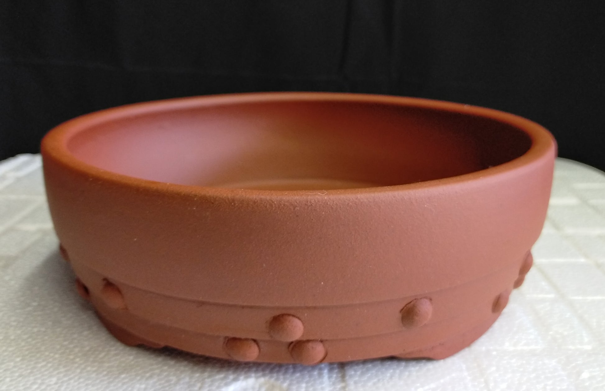 This beautiful bonsai pot is made of purple sand clay or zi-sha, made in the famous Yixing city (Pottery City) of China.