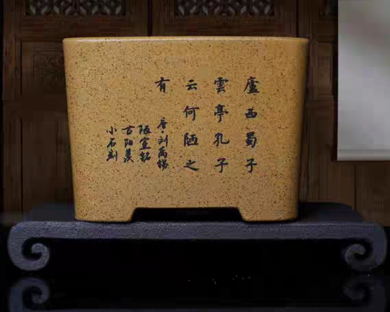 This beautiful bonsai pot is made of purple sand clay or zi-sha, made in the famous Yixing city (Pottery City) of China.