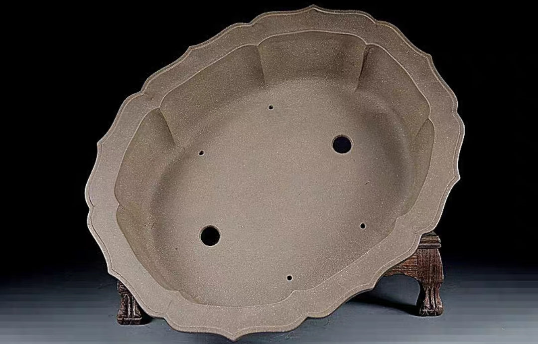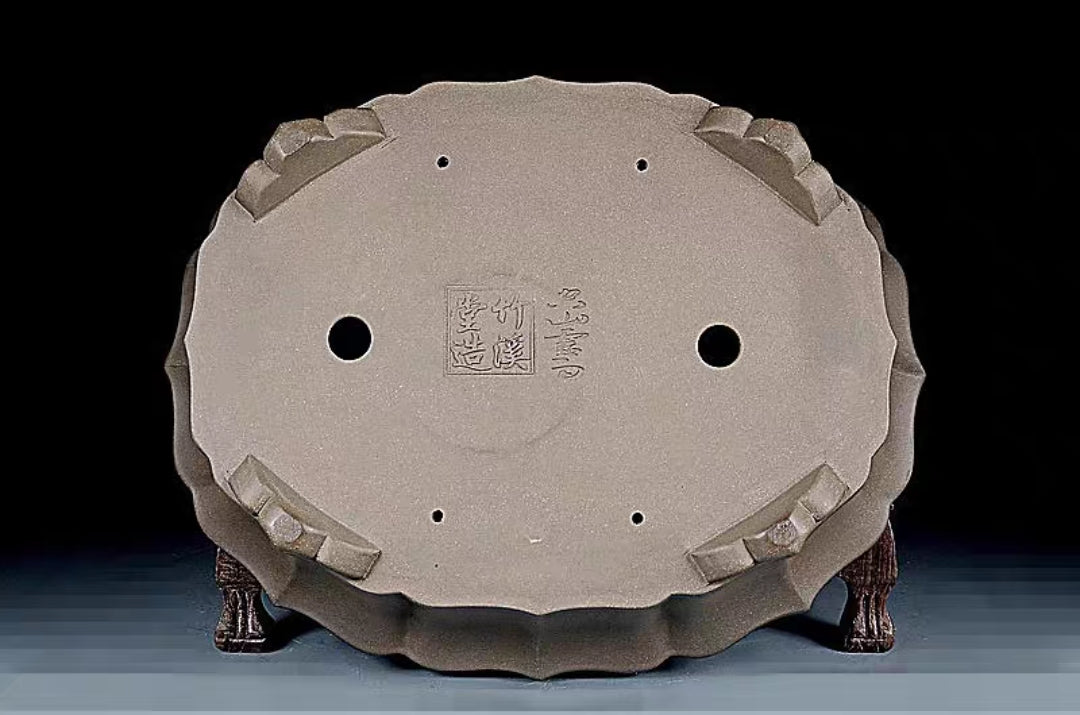 This beautiful bonsai pot is made of purple sand clay or zi-sha, made in the famous Yixing city (Pottery City) of China.