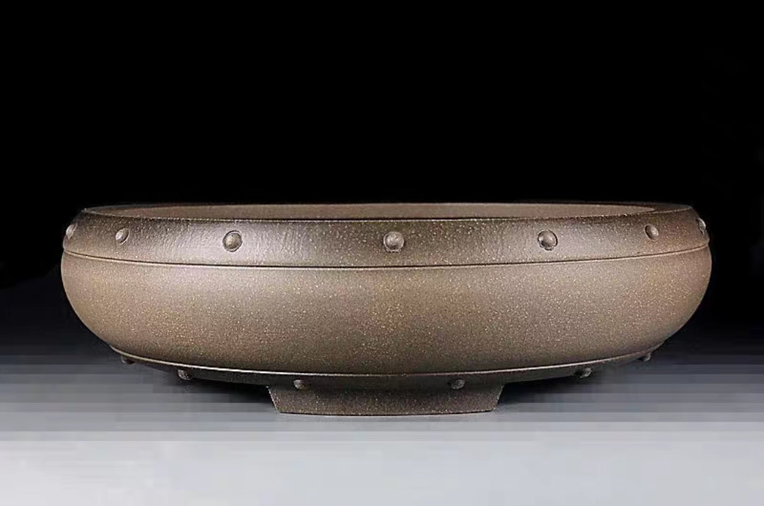 This beautiful bonsai pot is made of purple sand clay or zi-sha, made in the famous Yixing city (Pottery City) of China.