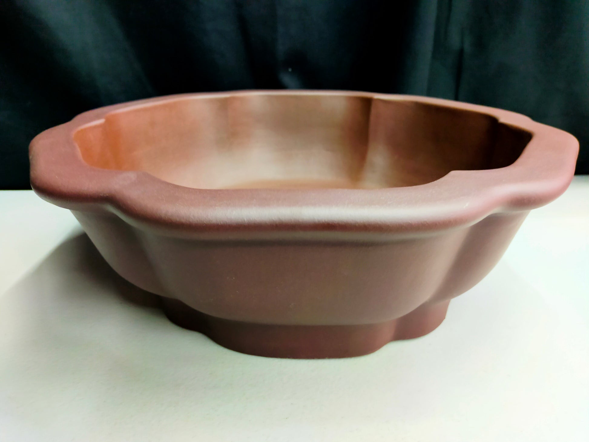 This beautiful bonsai pot is made of purple sand clay or zi-sha, made in the famous Yixing city (Pottery City) of China.